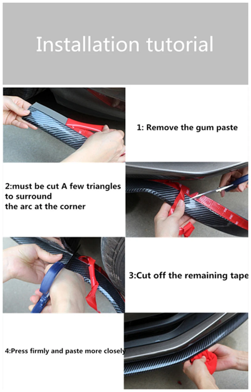 Универсален спойлер тип лип + крепежни елементи.Изключително гъвкав и лесен за моделиране, спрямо детайла.Подходящ както за предна броня така и за прагове.Снижава автомобила и придава спортен вид.Може да се реже и скъсява.Спойлера е оборудван с двойнолепяща лента 3М за по-добро залепване и допълнително лепило.Размери (ШхД) 5см х 2.5м.Цвят на спойлера: Черен карбон
