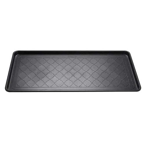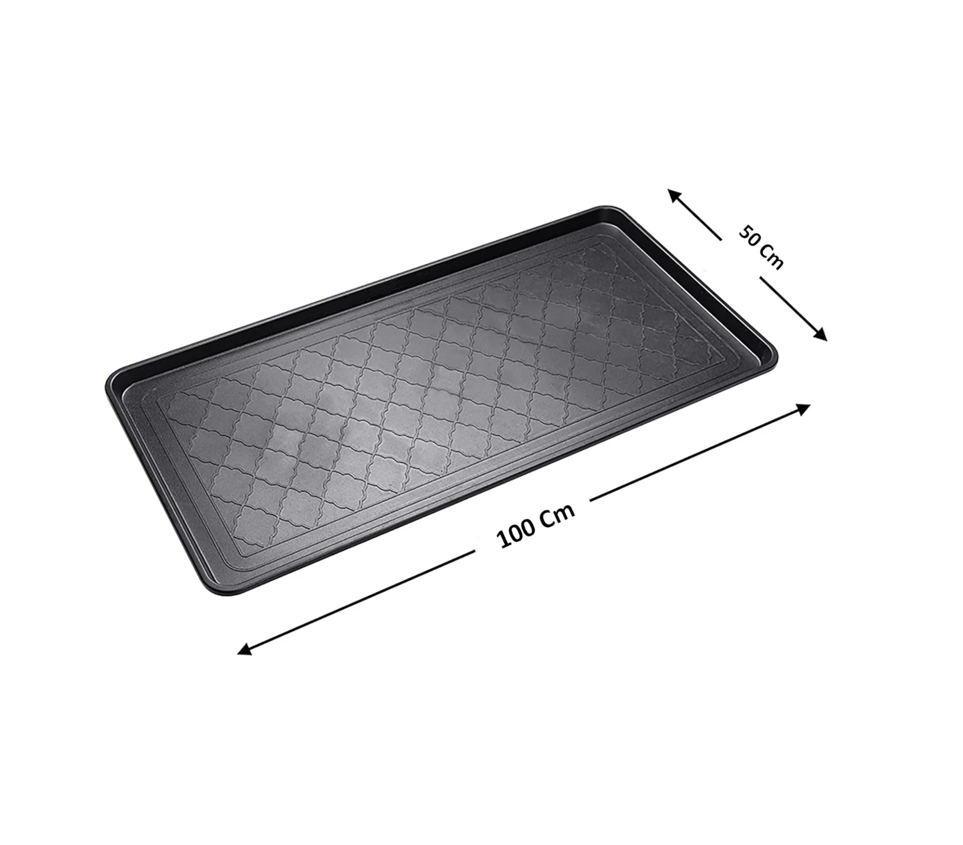 Универсална стелка багажник, пластмасова подложка, която предпазва подовите настилки от замърсяване или увреждане. Подходяща за употреба у дома, на терасата, в гаража, работилницата, мазето или в багажника на автомобила. Материал: Пластмаса Цвят: Черен Размери: 100 x 50cm Идеално приложение като поставка за: Обувки (покрити със сняг, мокри или замърсени) Саксии за цветя Купички за храна и вода за домашни любимци Кутии с боя по време на боядисване Акумулатори по време на зареждане и други.