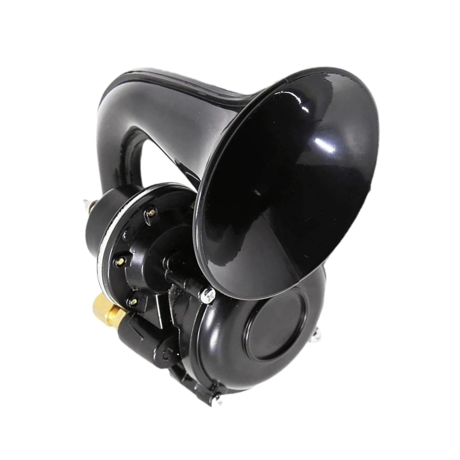Описание на продукта: Компактен и мощен въздушен клаксон тип snail , предназначен за монтаж в ограничени пространства. Осигурява силен и ясен звуков сигнал, подходящ за тежкотоварни и лекотоварни превозни средства. Благодарение на своята здрава конструкция и универсална съвместимост с 12V и 24V системи, този клаксон е идеалното решение за подобряване на сигнализацията на вашето превозно средство. Характеристики: Тип сигнал: Въздушен Захранване: 12V или 24V Сила на звука: 120 децибела Интегриран соленоид: Съвместим както с 12V, така и с 24V електрически системи Тип: Единичен черен въздушен клаксон (Snail Air Horn) Цвят: Черен Изисква: Вградена въздушна система за работа  Приложение: Проектиран за монтаж в двигателния отсек на автобуси, камиони и пътнически микробусиПодходящ и за всякакви превозни средства с ограничено пространство за монтаж – леки автомобили, кемпери, офроуд превозни средства и други Забележки: Изисква наличието на въздушна система за правилна работа. Професионален монтаж се препоръчва за оптимална ефективност и безопасност. Проверете електрическата съвместимост с вашето превозно средство преди монтаж.