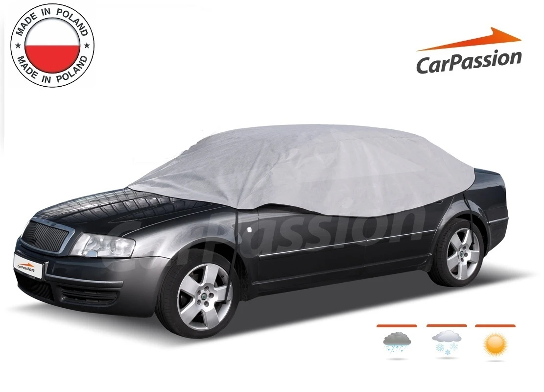 ПРОИЗВЕДЕНО В ПОЛША! Изработен от трислоен здрав материал (двоен полар отвътре с мембрана - дишащо фолио). Може да се използва целогодишно! Освен всичко друго, предпазва от UV лъчи, сняг, дъжд, замръзване. Предпазва от прекомерно натрупване на топлина вътре в автомобила, таблото и предметите вътре в автомобила през лятото. Прецизно ушит със здрави индустриални конци. Просто закачете еластичните бримки на капака с предпазните куки съответно за джантите.